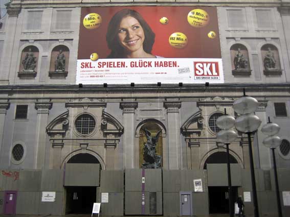 Inzwischen hat sich die Situation derart dramatisch verändert, dass ein weiteres Zuwarten nicht mehr möglich ist: Seit ein paar Tagen prangt ein neues, an Geschmacklosigkeit kaum mehr zu überbietendes Werbeplakat der Süddeutschen Klassenlotterie (SKL) an der Fassade