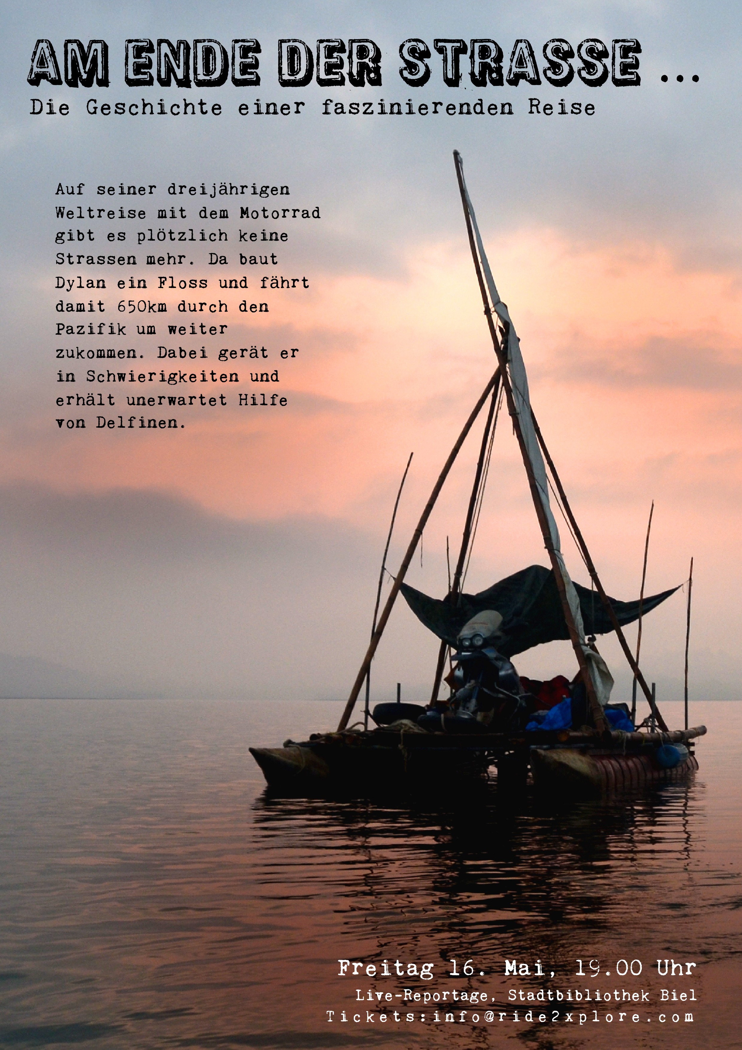 „Am Ende der Strasse“ erzählt die Geschichte von Dylan Samarawickrama aus Biel, der auf einer dreijährigen Weltreise mit dem Motorrad in Panama angekommen, selbst ein Boot baute und damit über den Pazifik bis nach Kolumbien fuhr. Ohne je vorher gesegelt zu sein und ohne je vorher ein Boot gebaut zu haben.