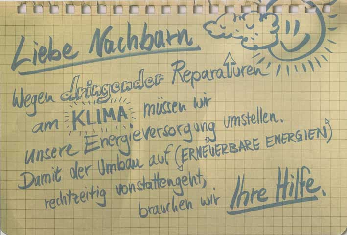 «Liebe Nachbarn, wegen dringender Reparaturen am Klima müssen wir unsere Energieversorgung umstellen.» Wer als Mensch, der das ungeahnte Potenzial lebendiger Nachbarschaften fördern will, einen solchen Satz liest, dem schlägt das Herz höher. Besonders wenn er vom World Wildlife Fund (WWF) stammt.