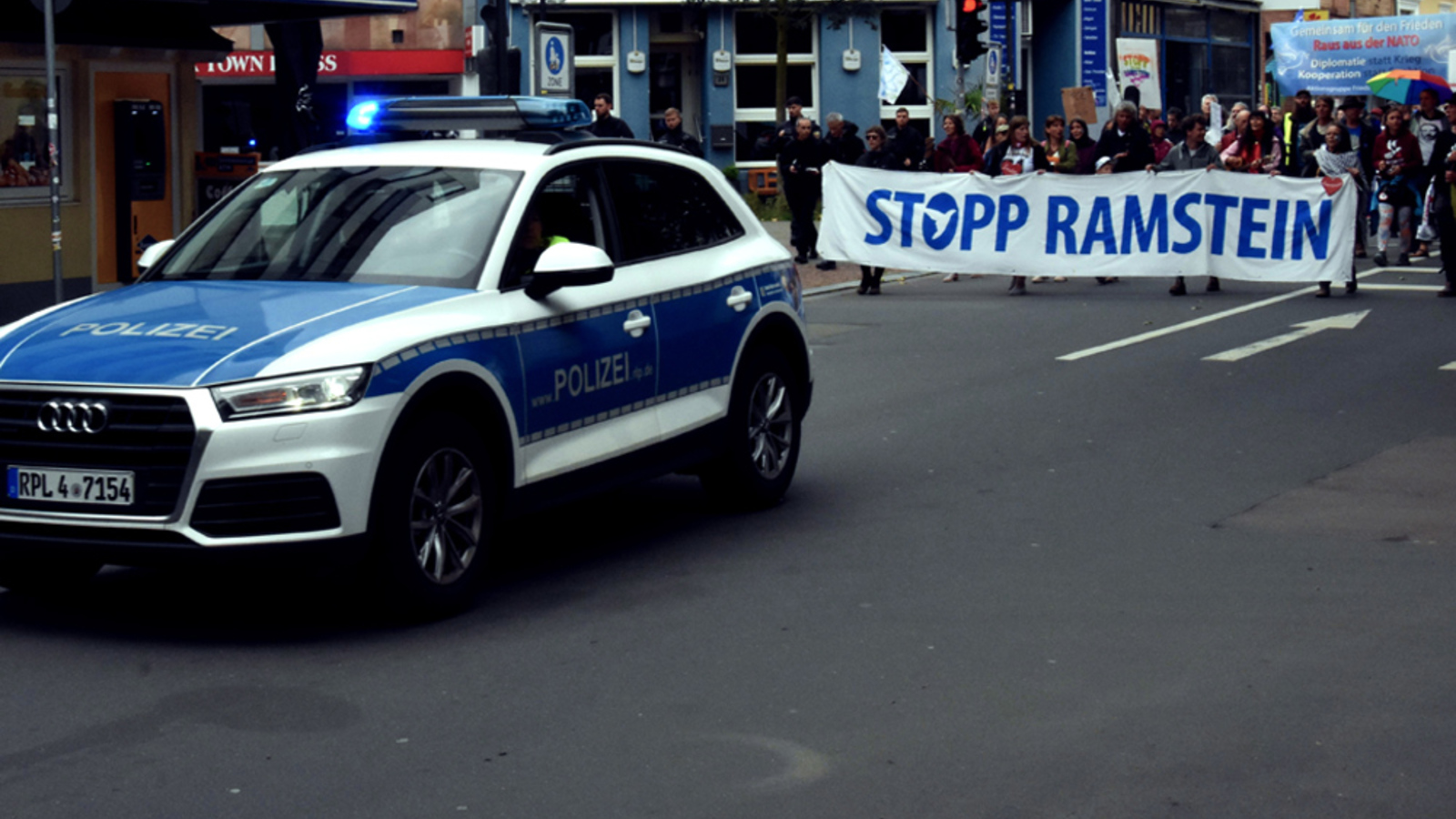 Erstmalig in der Geschichte der Stopp-Ramstein-Kampagne wurde der Protest ausschliesslich im Stadtzentrum des nahegelegen Kaiserslautern ausgetragen. Bislang hatte der Demozug immer zum Ziel, so nah wie nur irgend möglich an die Airbase heranzukommen. Auf einer abgesperrten Bundesstrasse ist die öffentliche Sichtbarkeit selbstredend überschaubar. Zwar sind die Demonstrierenden nahe an dem Gelände, gegen das sich ihr Protest richtet, doch muss ein solcher Protest auch wahrgenommen werden, damit er Wirkung entfalten kann.