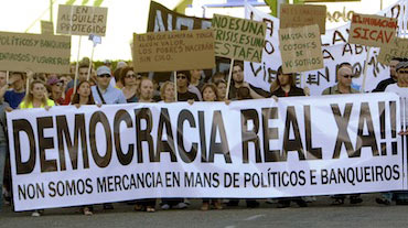 Die Demokratie gehört den Menschen (demos = Menschen, krátos = Regierung), wobei die Regierung aus jedem Einzelnen von uns besteht. Dennoch hört uns in Spanien der Großteil der Politiker überhaupt nicht zu. Politiker sollten unsere Stimmen in die Institutionen bringen, die politische Teilhabe von Bürgern mit Hilfe direkter Kommunikationskanäle erleichtern, um der gesamten Gesellschaft den größten Nutzen zu erbringen, sie sollten sich nicht auf unsere Kosten bereichern und deswegen vorankommen, sie sollten sich nicht nur um die Herrschaft der Wirtschaftsgroßmächte kümmern und diese durch ein Zweiparteiensystem erhalten, welches vom unerschütterlichen Akronym PP & PSOE angeführt wird.