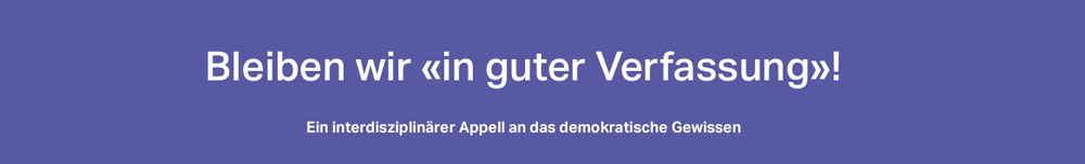 26 Persönlichkeiten aus Politik, Kultur, Wirtschaft und Wissenschaft haben deshalb den Appell «Bleiben wir in guter Verfassung!» veröffentlicht. Mit ihrem Aufruf wollen sie den demokratischen Diskurs – gewissermassen das «Immunsystem» einer offenen und toleranten Gesellschaft – beleben. Publiziert wurde der Aufruf auf der Website des politisch und konfessionell unabhängigen «Forum Ouverture». Initianten sind Simon Häusermann und Philippe Schultheiss.