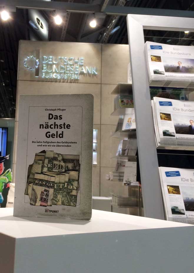 Der Teufel – oder wohl doch eher ein Engel – hat es offenbar gewollt, dass der Stand der edition Zeitpunkt an der Frankfurter Buchmesse gleich gegenüber dem der Bundesbank liegt. So nah waren sich das Problem und die Lösung schon lange nicht mehr.