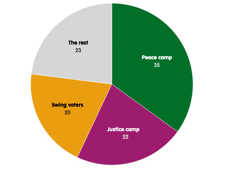 - Die Untersuchungen des ECFR zeigen, dass die Europäer zwar große Solidarität mit der Ukraine empfinden und Sanktionen gegen Russland unterstützen, aber hinsichtlich der langfristigen Ziele gespalten sind. Sie teilen sich in ein «Friedens»-Lager (35 Prozent der Menschen), das den Krieg so schnell wie möglich beenden möchte, und ein «Gerechtigkeits»-Lager, das glaubt, dass das dringendere Ziel darin besteht, Russland zu bestrafen (25 Prozent der Menschen).