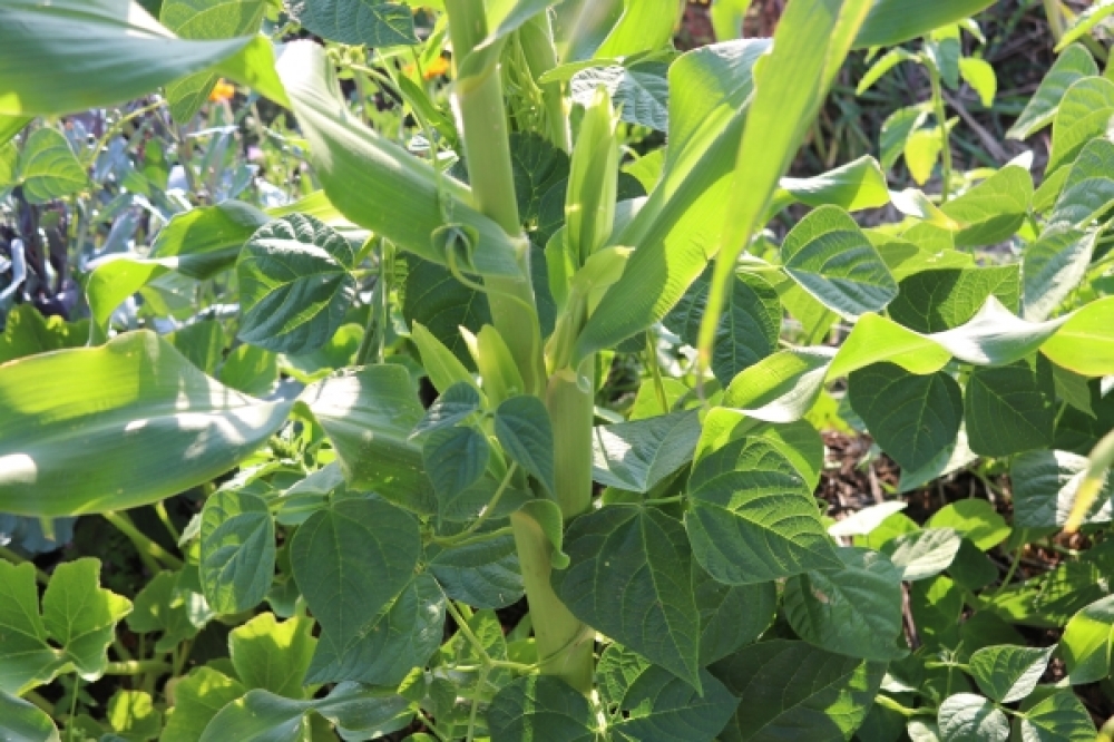 Die indigenen Völker nennen diese Gartenmethode die Drei Schwestern, (auch «Milpa» genannt) da sie sich gegenseitig schwesterlich unterstützen und im Endeffekt mehr Ertrag erbringen, als wenn sie «monogam» allein da stehen. Die Pflanzen wissen: gemeinsam sind wir stark.