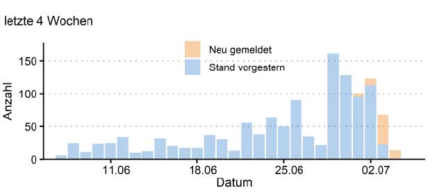 Dass die Tests für diesen Anstieg auf tiefem Niveau massiv ausgeweitet wurden, wird allerdings verschwiegen. Und dass der Prozentsatz der Testpositiven wie seit Wochen unter 1 Prozent liegt, wird ebenfalls nicht genannt.