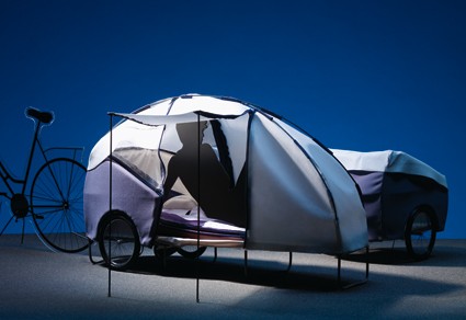Das Gefährt sieht fast lustig aus – eine Mischung aus 1-Mann-Zelt und einem alten VW Käfer. Der Anlass für seine Konstruktion ist jedoch ernst. Obdachlosen, die draussen übernachten müssen, fehlt meistens nicht nur der Regenschutz, sondern auch ein Stück Intimität und Geborgenheit, das Gefühl, einen Raum für sich allein zu haben. Dafür sorgt die transportable Schlafstätte «Cocon». Zusammengefaltet ist sie ein Veloanhänger. Für die Nacht kann eine Liegefläche ausgeklappt werden, die auf kurzen Beinen steht. Darauf wird ein Zeltdach aufgespannt. Auch ein Schlafsack, Matratze und persönliche Habe können in der Konstruktion untergebracht werden. Der «Cocon» mit Fahrrad kann ausserdem als Transportmittel für Liefer- und Entsorgungstätigkeiten genutzt werden, falls der Obdachlose einen Job hat.