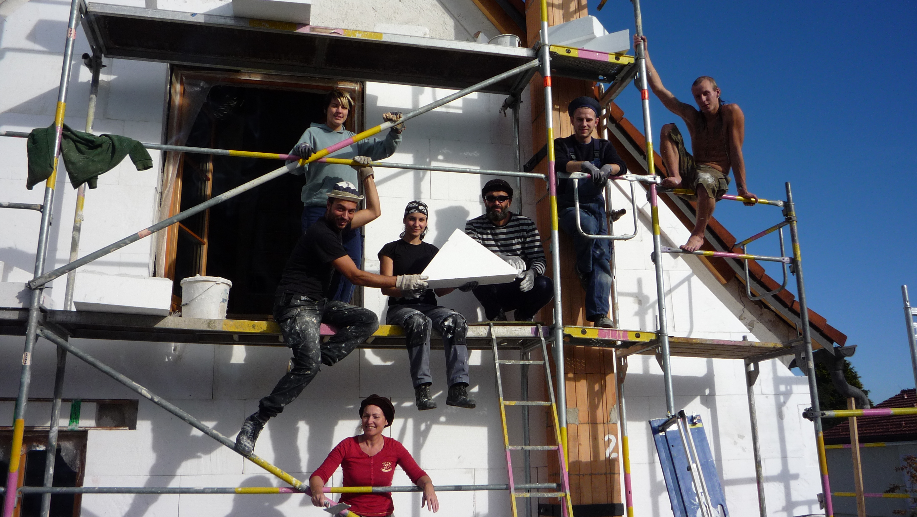 Ausserdem werden die Dachböden ausgebaut, um Platz für vier weitere Wohnungen zu schaffen. Einer davon soll zum Gemeinschaftsraum werden: für Vereinstreffen oder um gemeinsam Fernsehen zu schauen. Eine Werkstatt für die handwerklich Begabten und einen Proberaum für die Musiker gibt es schon. Bis Juni 2011 soll ein Grossteil der Renovierungen fertig sein. Abgesehen von schwierigen Arbeiten wie der Elektroinstallation machen die Bewohner tatsächlich alles selbst. Die meisten haben bisher um die 400 Stunden in den Bau gesteckt, manche auch 600. Da bleibt nicht mehr viel Zeit für Hobbys: «Wenn man von der Arbeit heimgeht, dann ist erst mal Baustelle angesagt», meint David. «Aber irgendwann ist das auch vorbei», fügt sein Mitstreiter Stefan hinzu. Und es macht auch Spass, sagen beide. Vor allem im Sommer. Man arbeitet bei schönem Wetter draussen, mit teilweise 15 Leuten auf der Baustelle – das erzeugt ein Gemeinschaftsgefühl.