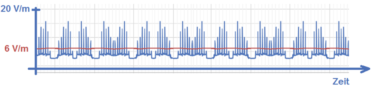 Die Mittelung über 6 Minuten soll gemäss Bundesrat für die Antennenanwohner trotz der enorm hohen Spitzen zu gleich viel Strahlung führen wie bisher. Damit wird jedochdie Gesundheit der Anwohner auf unverantwortliche Art gefährdet.