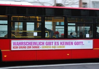 „Es gibt wahrscheinlich keinen Gott – sorge dich nicht und geniesse das Leben“, so der übersetzte Text einer Buswerbung in England, Spanien und Australien, ist Motto der Organisation „Geniess das Leben“. Sie informiert über die christlichen Kampagnen, organisiert und koordiniert den Widerstand dagegen. In der Stadt St. Gallen wird mittlerweile keine religiöse Werbung in Fahrzeugen der Verkehrsbetriebe mehr zugelassen.