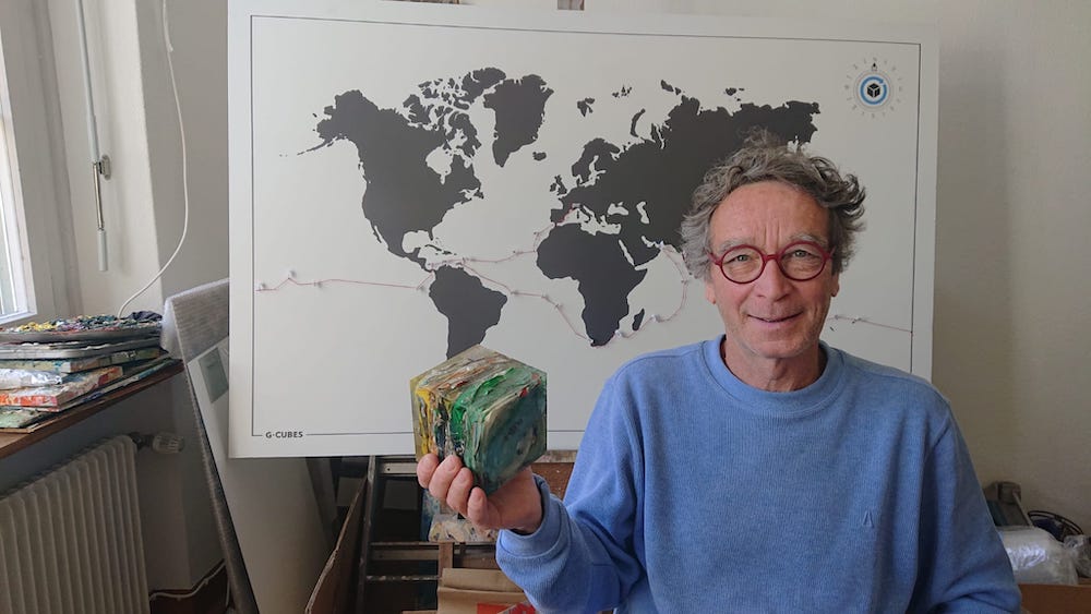 Harrys Geschichte begann noch viel früher. Gestartet war er nämlich September 2017 in Frankreich. Drei Jahre umsegelte er die Welt, mit seinem Schiff und seinem Projekt: G-Cubes. Aus Meeresmüll, das er mit Menschen auf der ganzen Welt zusammensammelte, erschuf er zahlreiche Würfel, Cubes, die dann wiederum Teil eines noch grösseren Monument werden sollen.