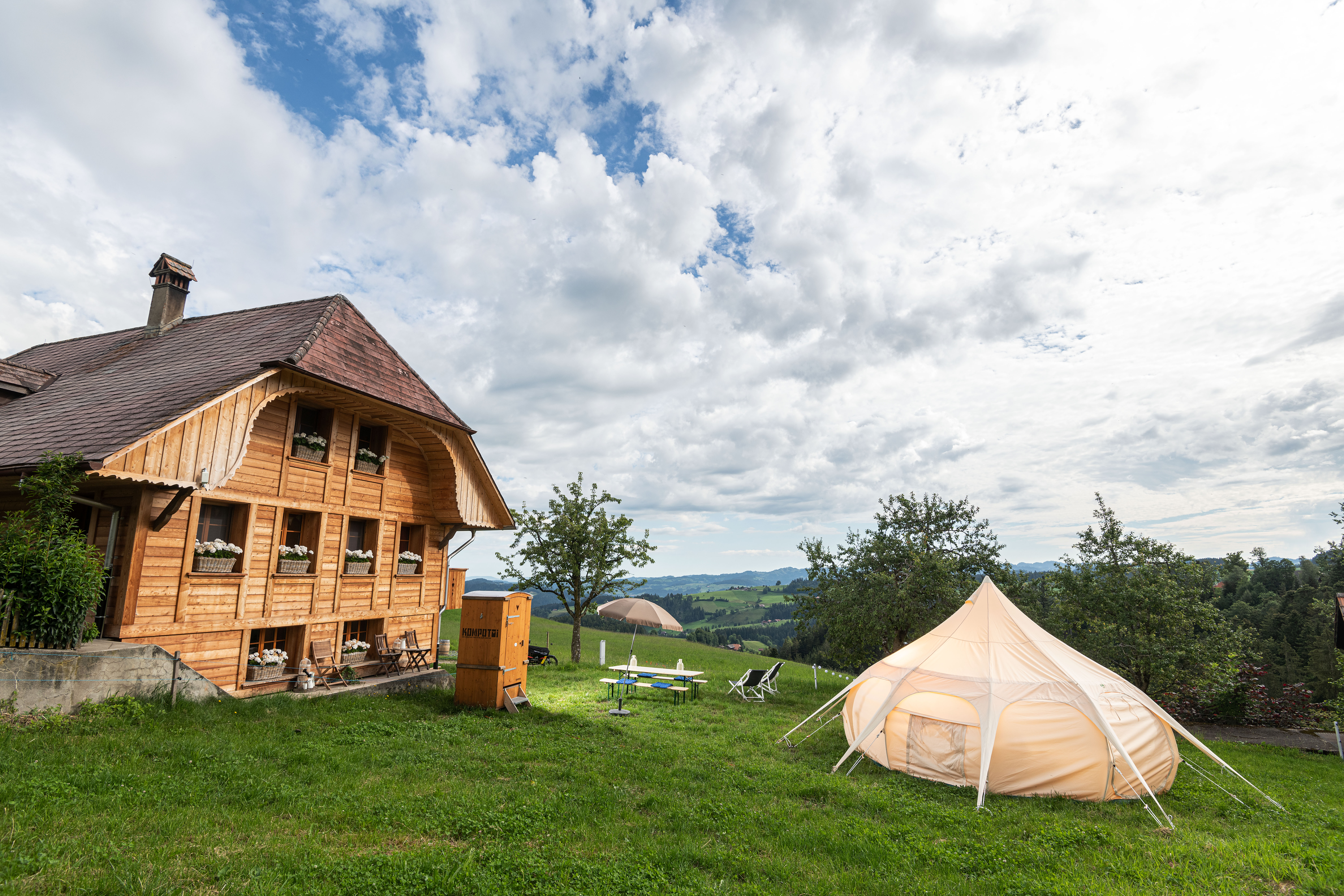 Auf der Internetseite bleibhier.ch findet man ungewöhnliche Angebote, die Lust machen, sie auszuprobieren. So kann beispielsweise ein komfortabel eingerichtetes Glamping-Zelt auf einem Bauernhof im Emmental gebucht werden. Mit elektrischen Cargo-Bikes, die zur Verfügung gestellt werden, erreicht die ganze Familie das Zelt von Bern aus ohne jegliche Emissionen und Schweissperlen. Ein anderes Angebot verspricht luftige Stunden zwischen Bäumen: Man kann eine Nacht buchen, in der man in schwebenden Baumzelten den Geräuschen des Waldes nachhängt.