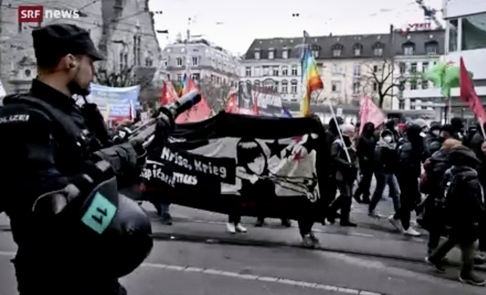 Gegen wen wollen die Schwarzgewandeten mit den hellblauen Medizinmasken revoltieren? Gegen den Staat wohl nicht. Denn sonst trügen sie das staatlich gekrönte Krankheitssymbol eher nicht im Gesicht. Und falls ihr Ausstieg aus dem Kapitalismus ebenso unüberlegt ist wie ihre Demo, dann Gute Nacht Schweiz!