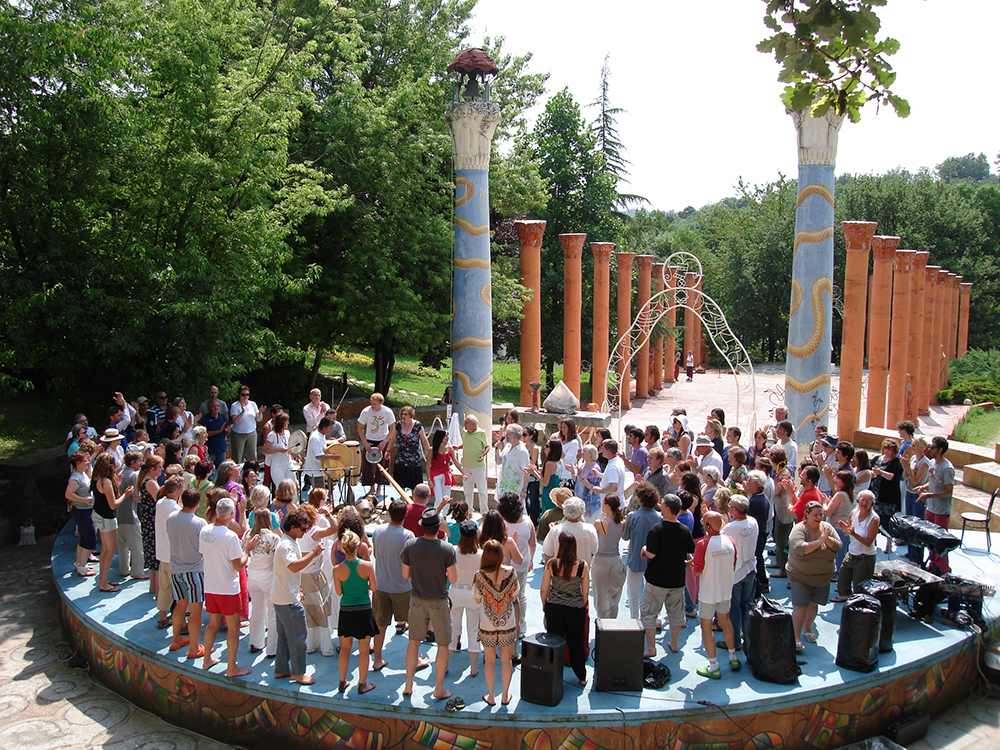 Herzlichen Glückwunsch zum Geburtstag, Damanhur! 50 Jahre – vor einem halben Jahrhundert seid ihr aus Turin in dieses Tal gezogen, damals zu 25 jungen Menschen. Ihr wolltet nicht nur spirituell forschen, sondern auch materiell etwas bewegen! Ihr habt eine Föderation gegründet, seid nicht nur eine Gemeinschaft, sondern ein Volk mit mehreren hundert Menschen, einer eigenen Sprache, eigener Währung. Ihr habt heimlich einen unterirdischen Tempel gebaut und viele andere unglaubliche Dinge erreicht. Ihr habt aber auch Krisen durchlebt – und seid teilweise noch mittendrin. Trotzdem empfangt ihr uns mit grosser Herzenswärme und lasst uns an eurer überschäumenden Kreativität teilhaben. Mögen wir gemeinsam eine weltweit wirksame Gemeinschaft der Gemeinschaften aufbauen.