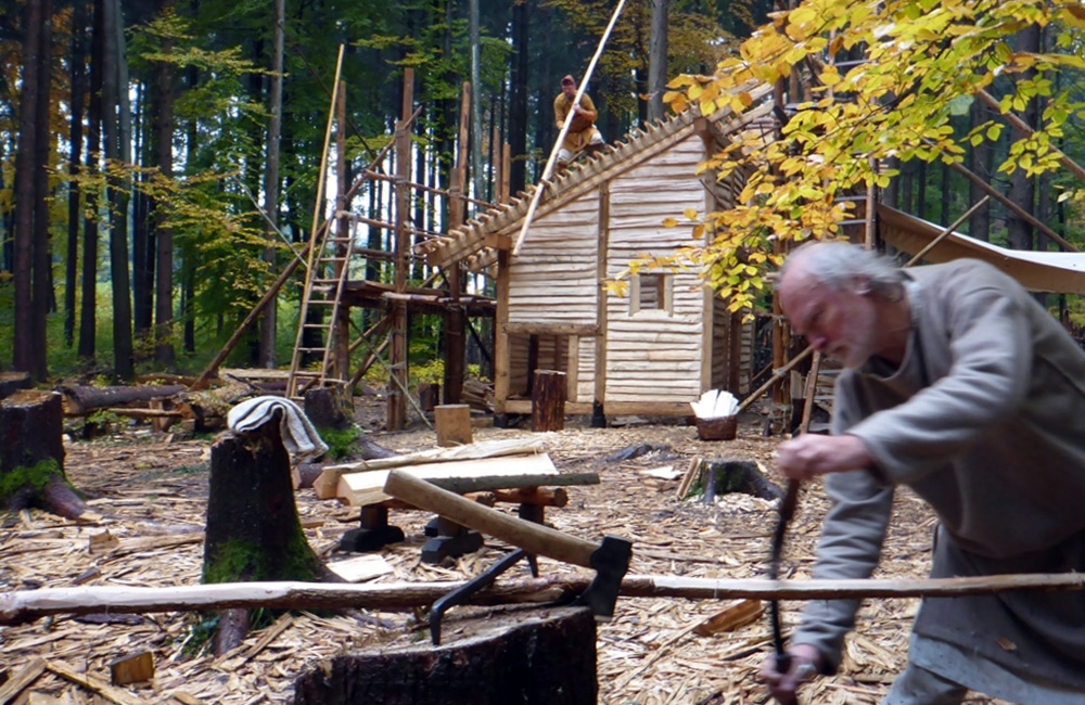 Ochsen ziehen Baumstämme zur Baustelle, Handwerker behauen Balken mit Äxten – und aus der Schmiede tönt der klingende Schlag des Amboss‘. Alles ist mühsamer und langsamer als auf modernen Baustellen, aber auch erfüllender und befriedigender. Da der Bauprozess ständig weitergeht, gibt es immer wieder Neues zu sehen, zu hören und anzufassen. Auch Mitmachen ist möglich: