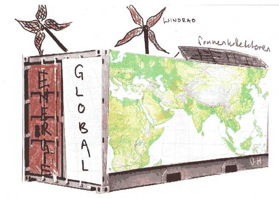 Als Wanderausstellung konzipiert, werden in sechs Containern die Nachbarschaften der Zukunft in greifbare Reichweite gebracht. Gezeigt werden Konzepte und Technologien, die den Alltag lebenswert und perspektivenreich machen – konsequent ohne einen Tropfen Erdöl, allein auf der Basis nachwachsender und rezyklierter Ressourcen regionalen Ursprungs. Die «Denkgegenstände» werden mit internen und externen Partnern an der «Community for Sustainability» der FHNW entwickelt und zu Ausstellungsthemen gebündelt. Sie geben innovative und realistische Antworten auf Fragen der Energiegewinnung, des Lernens, des Arbeitens und des Kommunizierens, des Bauens, der Ernährung, der Mobilität, der Produktion des Lebensnotwendigen, der Gesundheit, des geselligen Umgangs und der Erholung.