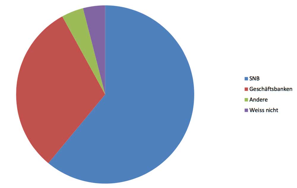 60% der Befragten meinen irrtümlicherweise, dass die SNB schon heute den überwiegenden Teil unseres Geldes herstellt. Damit sind sie der Ansicht, dass das Ziel der Vollgeld-Initiative schon umgesetzt sei. Das erklärt, weshalb die Dringlichkeit der Vollgeld-Initiative durch die Abstimmenden nicht wahrgenommen wurde. Tatsächlich wird das gesamte elektronische Buchgeld, das etwa 90% der Geldmenge ausmacht, von den privaten Geschäftsbanken erzeugt.