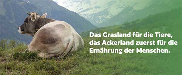 Die Schweiz hätte genug Ackerflächen, um sich ganz selber zu versorgen. Das Grasland der Schweiz eignet sich für die Milch- und Fleischproduktion, jedoch steht der Anbau von Futter auf Ackerflächen in direkter Konkurrenz zur menschlichen Ernährung.