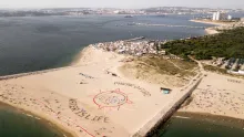 Rund 800 Menschen protestierten am Strand Cabo de Vapor bei Lissabon in einer kreativen Aktion gegen die geplanten Öl- und Gasbohrungen und Fracking und stellten gleichzeitig Alternativen für eine regenerative, erdölfreie Zukunft vor.