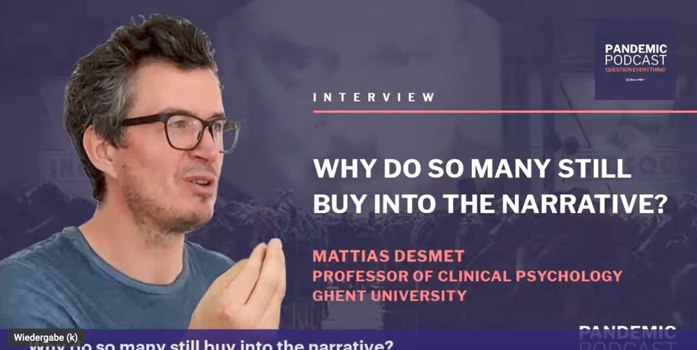 Quelle: Interview von Dan Astin-Gregory mit Dr. Mattias Desmet, Professor für klinische Psychologe, Universität Gent: «Why do so many still buy into the narrative?» (YouTube)
