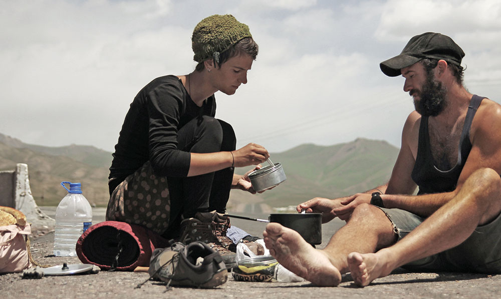 Sie werweissen und lesen sich ein, sie planen und packen ihre Rucksäcke, die Kamera muss mit. Im März 2013 ziehen sie los, halten den Daumen hoch. Fliegen wollen sie nie. Sie wollen nichts überspringen, sondern Menschen in ihrem Alltag kennenlernen, denen sie unterwegs begegnen: Balkan, Moskau, Zentralasien, Kaukasus, Iran. Dann stehen sie vor der Grenze zu Pakistan. Dahinter sei es sehr gefährlich, heisst es. Sie vertrauen in das Gute und reisen ein. Fünf Wochen verbringen sie in diesem Land, das so anders ist als die Nachrichten uns weismachen wollen. Dann wieder weiter, der Nase lang: Indien, Nepal, China, die Mongolei.