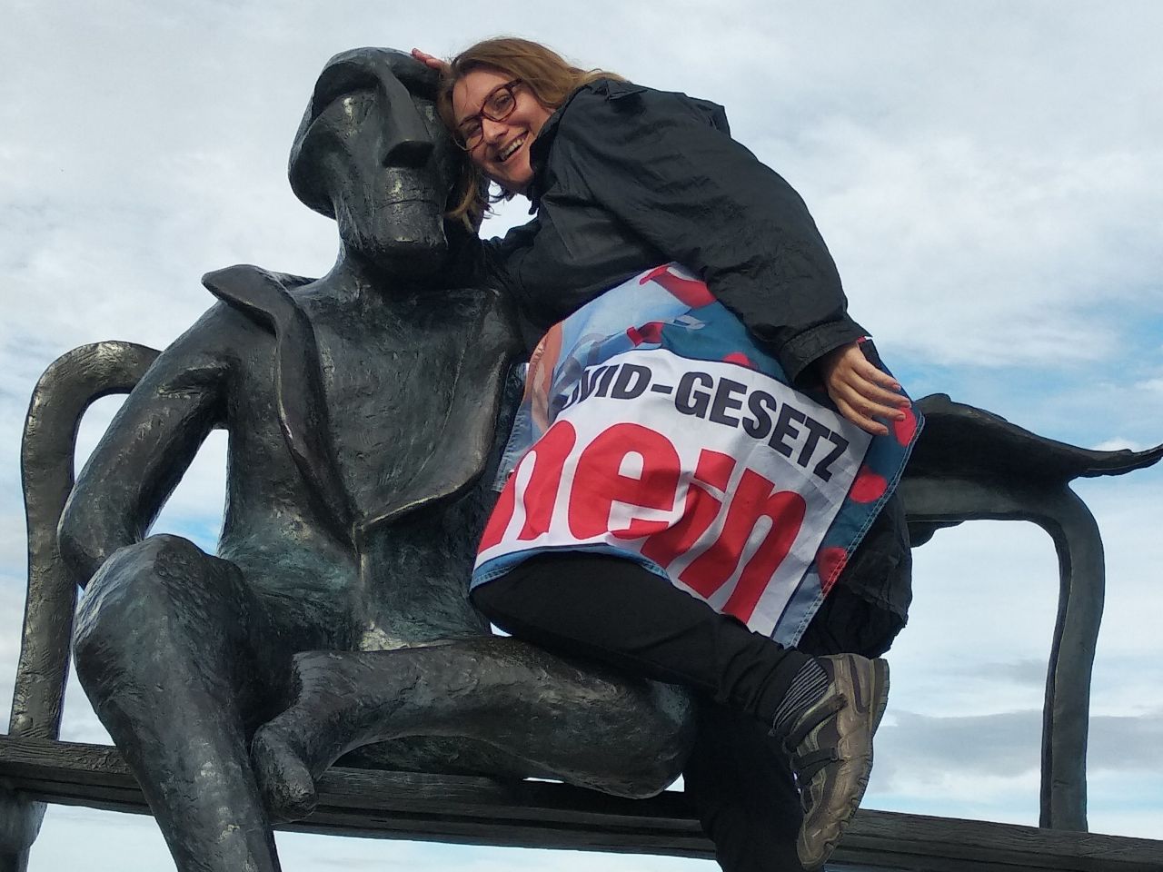 Die als Kritikerin der Kesb-Massnahmen bekannte Jasminka ist heute auch gegen die Corona-Massnahmen aktiv. Mahnwachen, Kerzenspaziergänge, Flashmobs, Picknicks und jüngst die Plakat-Aktionen gehören in ihr Repertoire.