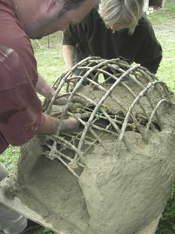 Im Camp «Grundlagen des Lehmbaus» ( 1 – 6. August 2011) lernen die Teilnehmenden Lehm auf die richtige Konsistenz zu prüfen, Wände aus Weidengeflecht mit Strohlehmbewurf zu festigen, Lehm aufzuschlämmen, Verputze herzustellen und aufzuziehen, Trockenlehmsteine zu fertigen und viele mehr. Der Kreativität im Ausprobieren von Gestaltungsmöglichkeiten sind keine Grenzen gesetzt. Das Gelernte können die Teilnehmenden zuhause in den eigenen vier Wänden oder im Garten umsetzen.