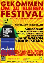 Am «GEKOMMEN UM ZU BLEIBEN» wird vieles geboten. Drei fantastische Bands, ein Weltklasse Poetry Slam, Informationsstände und Workshops rund um die Themen Sans-Papiers | Asyl- und Migrationspolitik, einiges zum Essen und noch viel mehr zum Trinken. Kommet in Scharen und feiert mit uns!