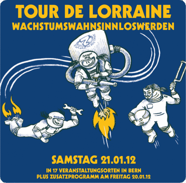 Eine breite Vielfalt an Workshops wird angeboten: «Die hohe Qualität der 2000-Watt Lebensweise» mit Vertretern der AG Nachbarschaften von Neustart Schweiz, «Ende des Wachstumsträgers Erdöl – was nun?» von Décroissance Bern, «Die Folgeerscheinungen des Geldsystems» von ATTAC Deutschland, über «bazore – Zeit tauschen in Bern», «Landwirtschaft als Care-Arbeit» von WoZ-Redakteurin Bettina Dyttrich sowie «Die Weltwirtschaftskrise: Konsequenzen und Perspektiven» gehalten von dem Autor und Historiker Karl-Heinz Roth um nur einige zu nennen. Das Reitschule Kino zeigt unter anderem die Schweizer Premiere des Filmes «Die Ökonomie des Glücks». Wie gewohnt steigt dann am Samstag Abend das grosse Fest in diversen Lokalen dies- und jenseits der Lorrainebrücke mit vielen Konzerten und DJs.