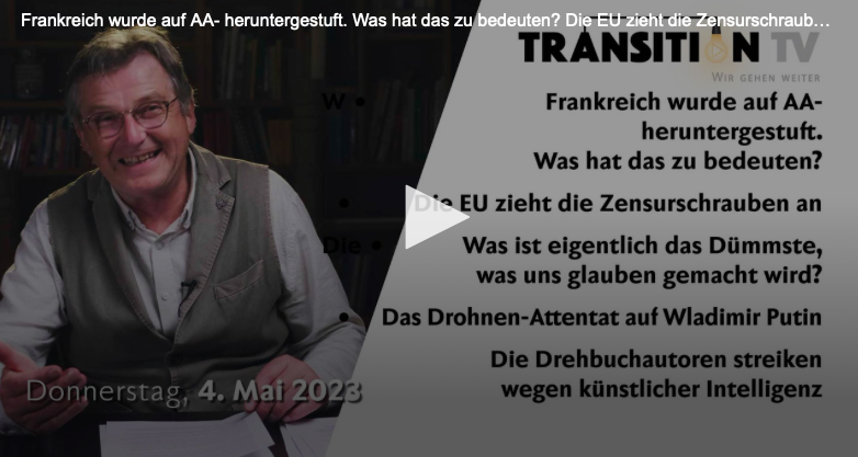 Die EU zieht die Zensurschrauben an • Das Dümmste, was uns glauben gemacht wird • Das Drohnen-Attentat auf Wladimir Putin • Die Drehbuchautoren streiken wegen künstlicher Intelligenz