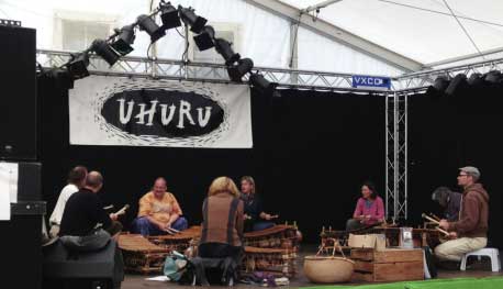 Denn auf dem Uhuru gibt es nicht nur abendliche Konzerte, sondern tagsüber auch zahlreiche Workshops, die rege besucht werden: von Perkussion (Djembé, Rahmentrommel, Darbuka, etc.) über verschiedenste Tanzstile (Orientalischer Tanz, Flamenco, Afrocubano, Improvisation, etc.) bis hin zu Stimmkursen (Oberton, Jodeln, Improvisation, etc.).