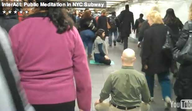 Das «Theatre Research Ensemble» eine Gruppe von sozial bewussten Performance-Künstlern aus New York beginnen in diesem Frühjahr eine «InterActs»-Serie, in deren Verlauf sie Sitz- und Gehmeditation in U-Bahn-Unterführungen praktizieren. Die insgesamt vier öffentlichen Meditations-Sitzungen sollen die Öffentlichkeit darauf aufmerksam machen, was Meditation sein kann und welche Vorteile eine regelmässige Praxis mit sich bringt, sagt Josh Adler, Kunst- und Kommunikationsdirektor des «Interdependence Projects», das die Aktion ermöglicht.