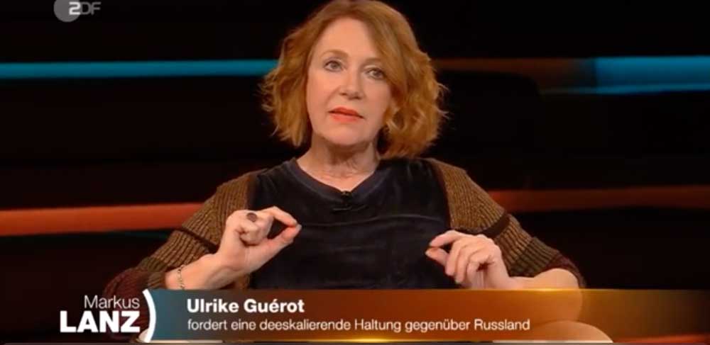 Die Bonner Politikprofessorin und Bestsellerautorin ( “Wer schweigt stimmt zu” , Westend) Ulrike Guérot war offenbar nur zu einem Zweck eingeladen worden: Nämlich, um ein Exempel an ihr zu statuieren. Ihre Position ist dabei eigentlich harmlos, sie stellt vor allem Fragen: Worum geht es? Was ist überhaupt die Interessenlage? Was ist das Ziel des Krieges? Im Kern forderte sie: Wir müssen zu den Ursprüngen dieses Konflikts vordringen und einen Weg hin zum Frieden bauen. Dann zogen sich die restlichen Diskutanden in ihre Schützengräben zurück und legten los, auf Kommando Lanz: «Wer will zuerst?».