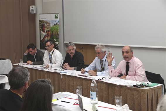 Marc Deschamps CEO der Syngenta Agro AG Schweiz sieht die Lösung etwa im zielgerichteten Einsatz von Agrochemikalien und der Verbreitung Hochertrags-Saatguts, welches nicht zuletzt mittels Gentechnologie auf die unterschiedlichen Probleme und Bedingungen angepasst werden könne und somit auch den verschärften klimatischen Bedingungen der Zukunft zu trotzen vermöge. Er wurde unterstützt von Dr. Philipp Aerni, Senior Research Fellow, vom World Trade Institute an der Universität Bern. Aerni plädierte dafür, die ideologischen Grabenkämpfe bezüglich Gentechnik endlich zu überwinden und modernste Agrotechnologie mit den Methoden des biologischen Anbaus zu kombinieren, was seiner Meinung durchaus möglich wäre. Damit stiess er im Publikum auf heftige Widerrede und lockte auch Hans Rudolf Herren aus der Reserve. „Wir dürfen die Zukunft der Welternährung niemals in die Hände einiger weniger privater Firmen legen, welche mit patentierten Sorten eine Monopolstellung inne haben“, so Herren. Vielmehr gehe es darum, die über eine Milliarde Kleinbauern, die heute 70 % aller Nahrungsmittel produzierten durch Ausbildung zu fördern, ihre Unabhängigkeit zu bewahren und die Vielfalt an lokalen Sorten zu erhalten. „Wenn wir das ganze System betrachten, ist klar, dass es jetzt grundsätzliche Änderungen in der Landwirtschaft braucht: Weg von der Symptombekämpfung und weg vom Raubbau an der Natur – hin zu einer nachhaltigen Produktion. Wir müssen den optimalen statt den maximalen Ertrag produzieren. Nur so können wir die natürlichen Lebensgrundlagen langfristig erhalten und dafür sorgen, dass die Menschen auch in Zukunft genug und gesunde Nahrung produzieren können,“ betonte Herren.