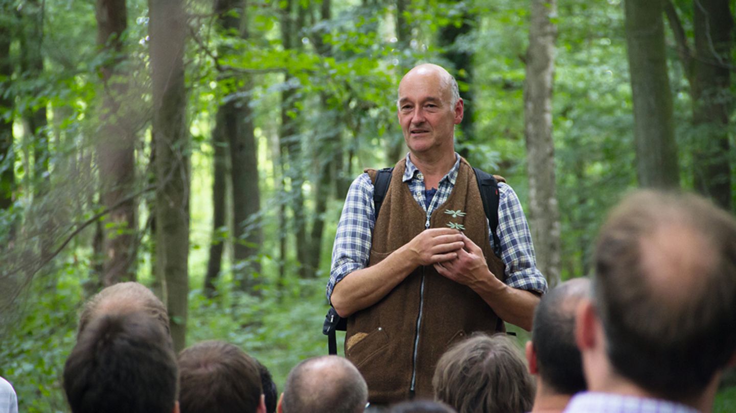 Ohne Not habe die RWE bis 50 Meter an den Wald herangegraben. 450 Millionen Kubikmeter Wasser darf der Konzern hier jedes Jahr abpumpen. Mit dieser Wassermenge käme eine Stadt wie Düsseldorf vier Jahre lang aus. Inklusive Industrie, betont Zobel. Er zeigt uns im Wald ehemals üppige Feuchtgebiete, in denen heute die Bäume und Brennesseln trocken rascheln. Wie soll der Wald das überleben! In ihm leben 142 geschützte Tierarten, darunter zwölf Fledermausarten. Auf alles hat der Geologe Antworten, nie bleibt er eine Antwort schuldig, er kennt sich aus sowohl in ökologischen Zusammenhängen als auch in allen Details des Rechts und Widerstands.