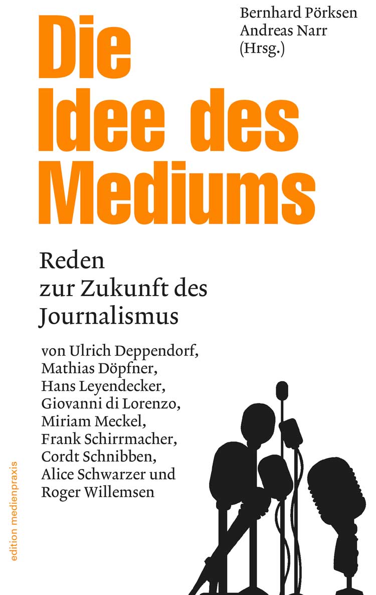 Bernhard Pörksen/Andreas Narr (Hrsg.): Die Idee des Mediums – Reden zur Zukunft des Journalismus. Halem-Verlag, 2015, 224 S., 9 Abb., Hardcover (Faden), 190 x 120 mm, dt., edition medienpraxis, Band 12, ISBN: 978-3-86962-146-3, Sammelband.